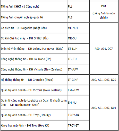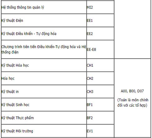 Dưới đây là bảng ghi cụ thể mã trường, mã ngành xét tuyển của trường Đại học Đại học Bách khoa Hà Nội 2019 các thí sinh có thể tham khảo: