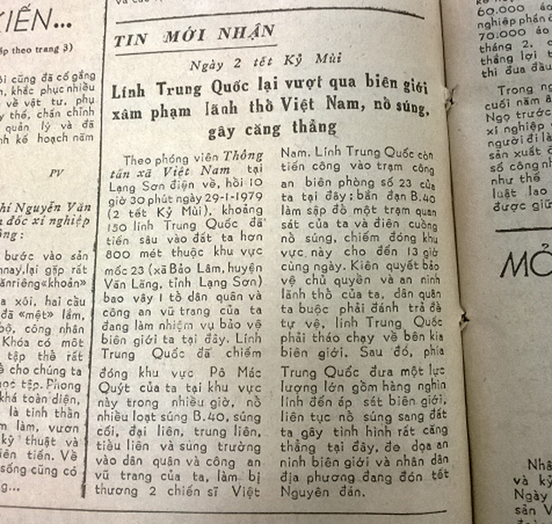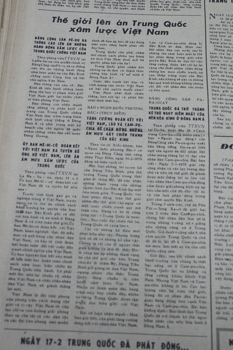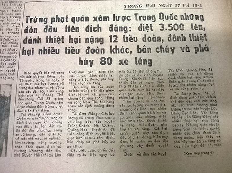 Đã 39 năm trôi qua nhưng ký ức về cuộc chiến tranh bảo vệ biên giới phía Bắc của quân và dân Việt Nam vẫn còn in đậm trong tâm trí. Hãy cùng nhìn lại những bài báo được đăng trên các báo Nhân Dân, Quân đội nhân dân, Hà Nội Mới... trong thời điểm này.
