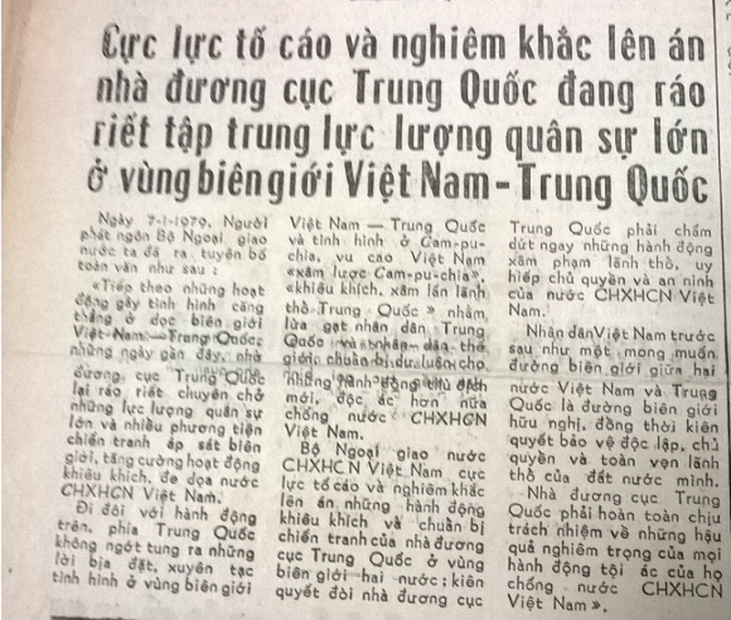 Trích Bị vong lục của Bộ Ngoại giao Việt Nam về việc nhà cầm quyền Trung Quốc tăng cường các hoạt động vũ trang ở biên giới Việt Nam và chuẩn bị chiến tranh (Báo Nhân Dân số 9017, ngày 15/2/1979).
