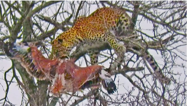 Báo hoa mai mạo hiểm leo lên cây săn bắt đại bàng