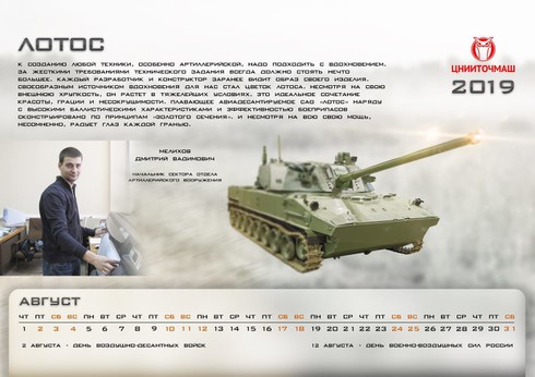 Trước đó, trong bộ lịch 2019, Cục thiết kế “TsNIITochMash” thuộc Tập đoàn Rostex của Nga đã vô tình để lộ hình ảnh của tổ hợp pháo tự hành Lotus, được thiết kế nhằm trang bị cho lực lượng đổ bộ đường không Nga.