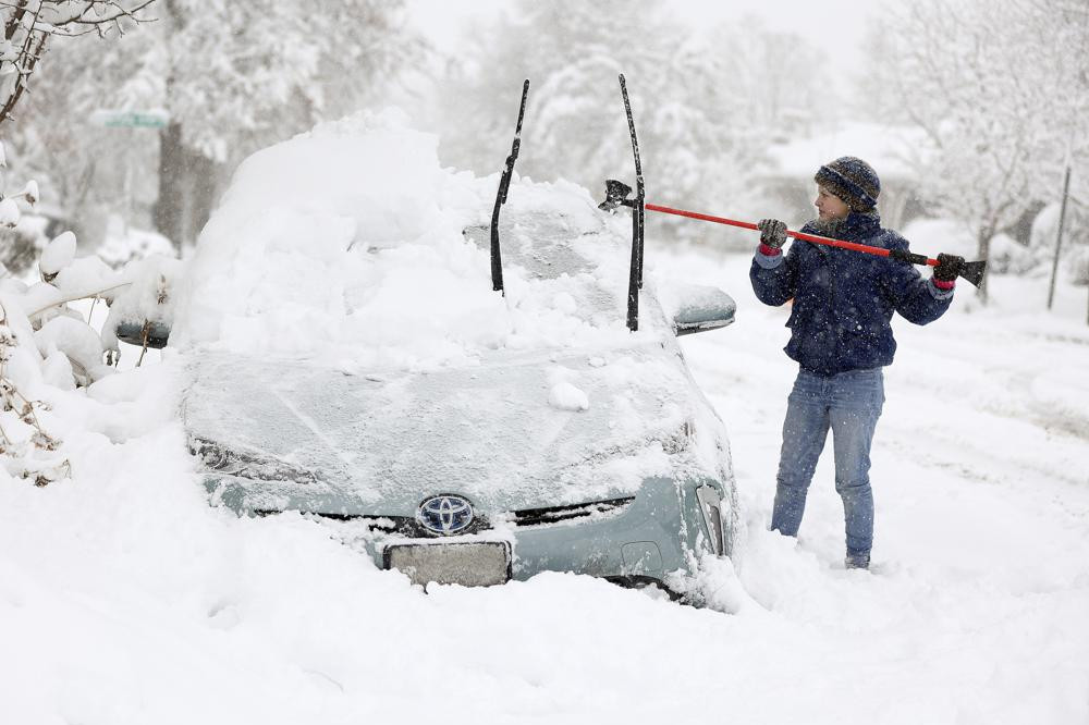 Tại Sioux Falls, bang Nam Dakota, cuộc sống thường nhật của người dân bị đảo lộn nghiêm trọng vì tuyết rơi dày 43cm, lạnh -5 độ C và những cơn gió giật mạnh 72 km/h.