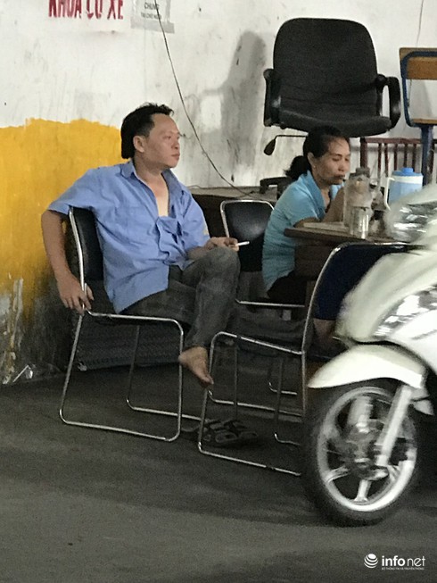Lo sợ nguy cơ xảy ra cháy nổ, chúng tôi nhắc nhở người bảo vệ rồi đi tới chỗ thanh toán phí gửi xe, cách khu nhà để xe khoảng 20m. Tại đây, thêm một bảo vệ khác cũng đang phì phèo thuốc lá. Một lần nữa, chúng tôi tiếp tục nhắc nhở người bảo vệ đang hút thuốc kia về nguy cơ cháy nổ khi hút thuốc tại nơi công cộng.