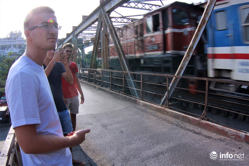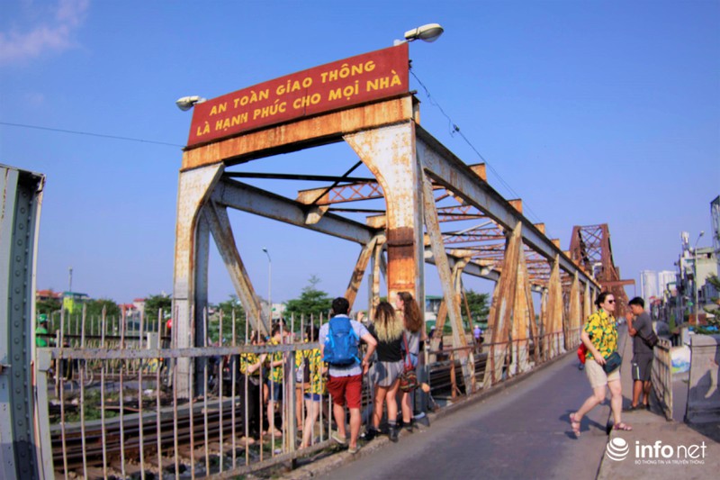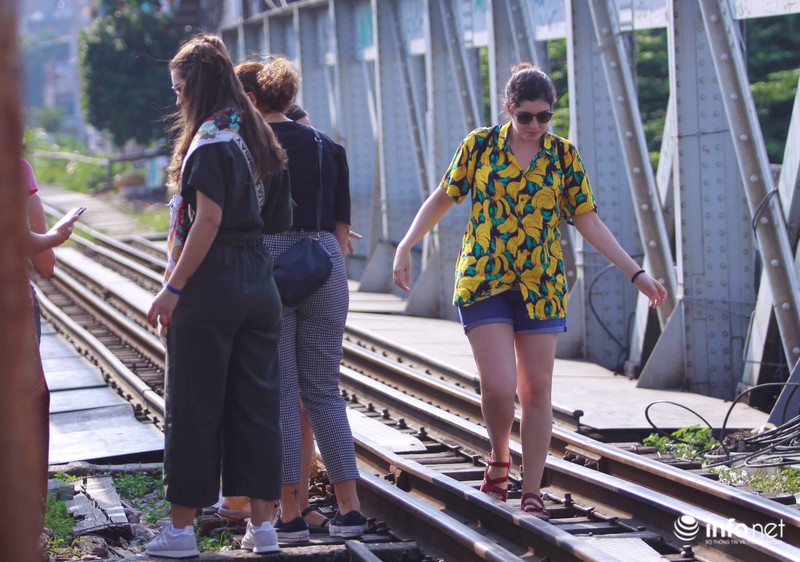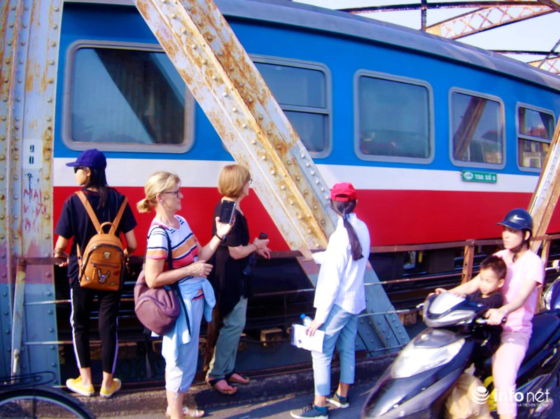 Hàng đoàn khách Tây đổ về cầu Long Biên chỉ để chụp ảnh cây cầu, chụp ảnh đoàn tàu cùng với đường ray, sau khi "Xóm cafe đường tàu" tại Phùng Hưng bị " xóasổ". |