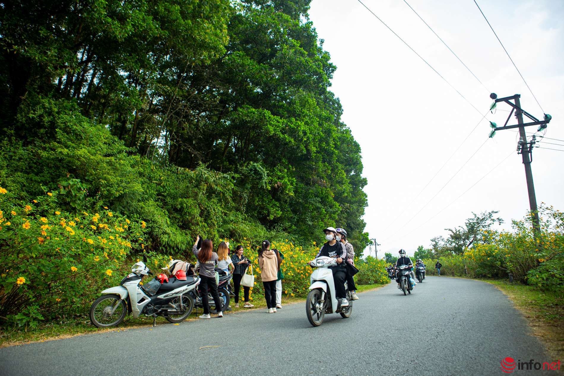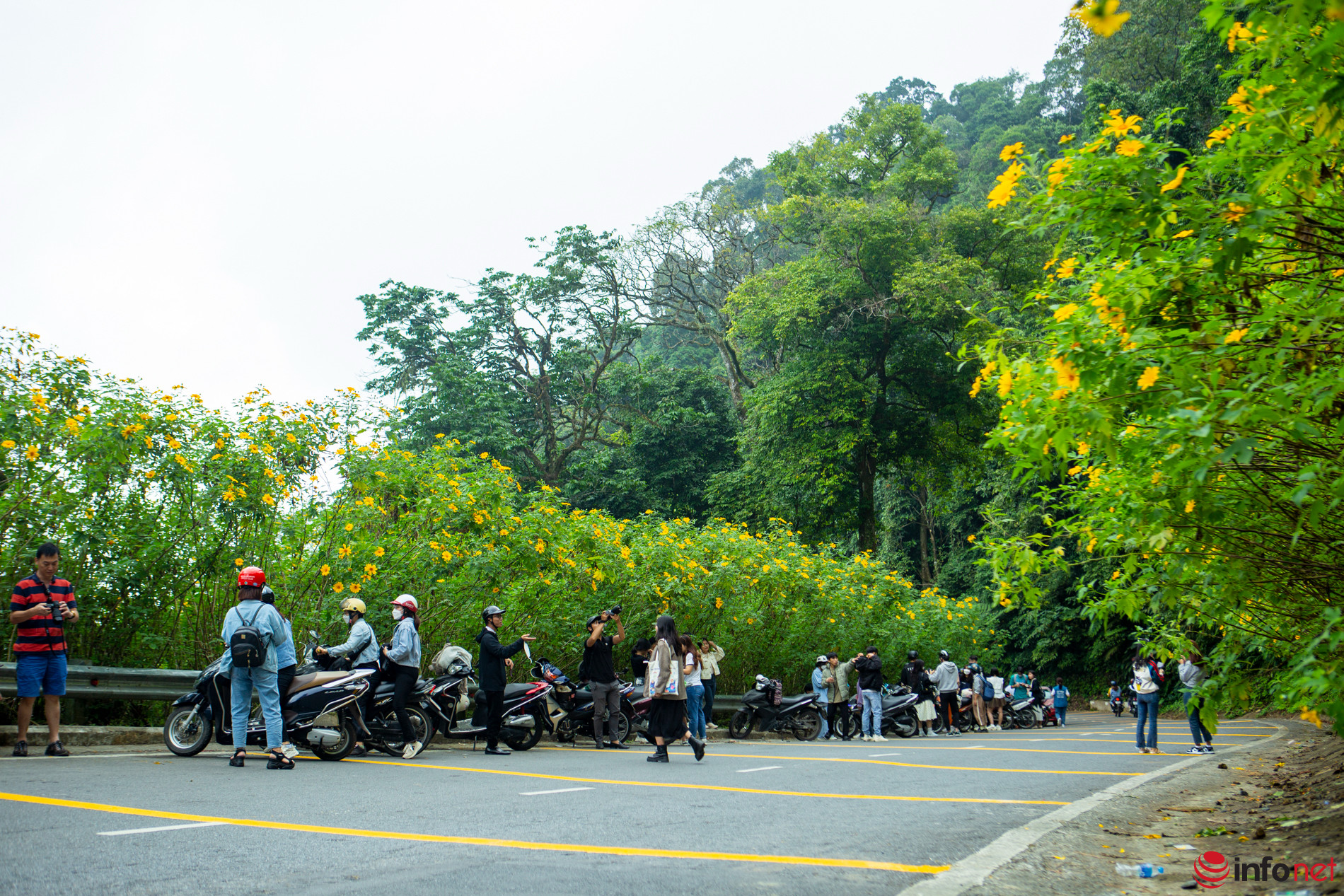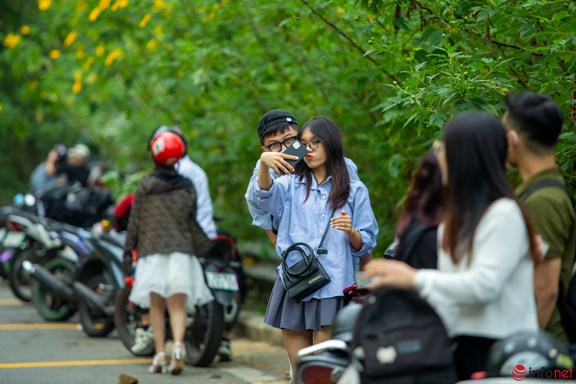 Bất chấp nguy hiểm, nhiều người tràn xuống lòng đường chụp ảnh với hoa dã quỳ