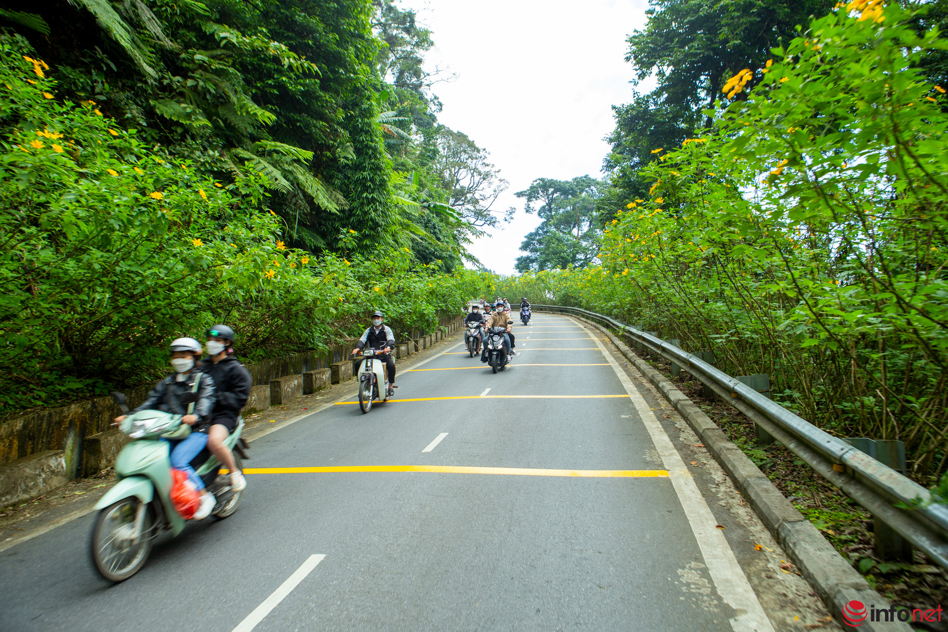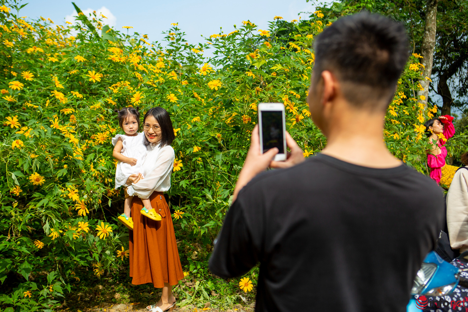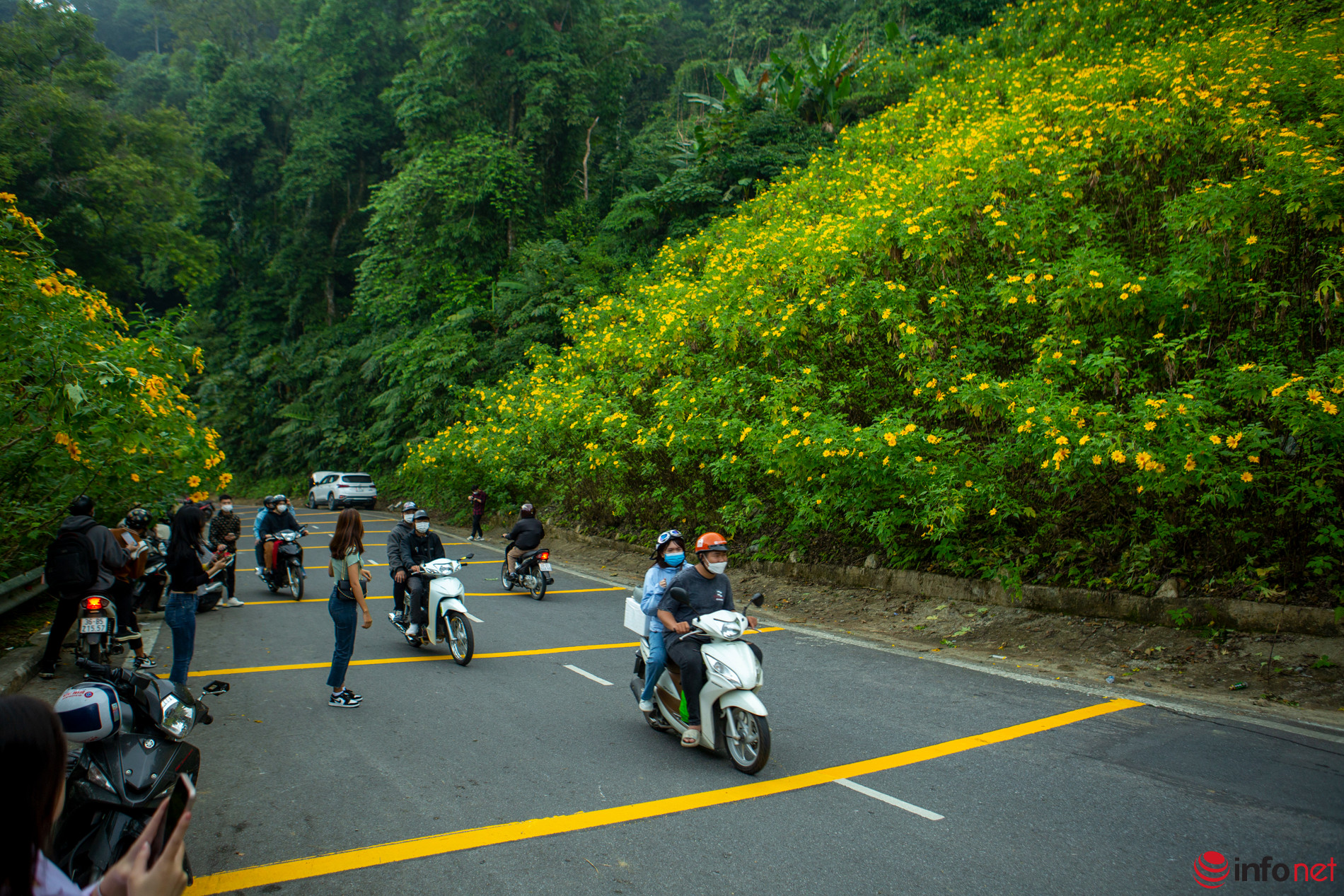 Bất chấp nguy hiểm, nhiều người tràn xuống lòng đường chụp ảnh với hoa dã quỳ