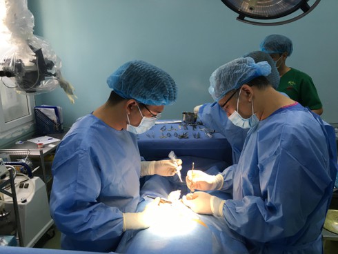 Các bác sĩ đang tiến hành phẫu thuật ca bệnh đặc biệt. |