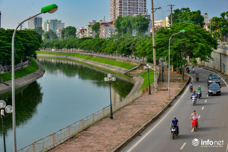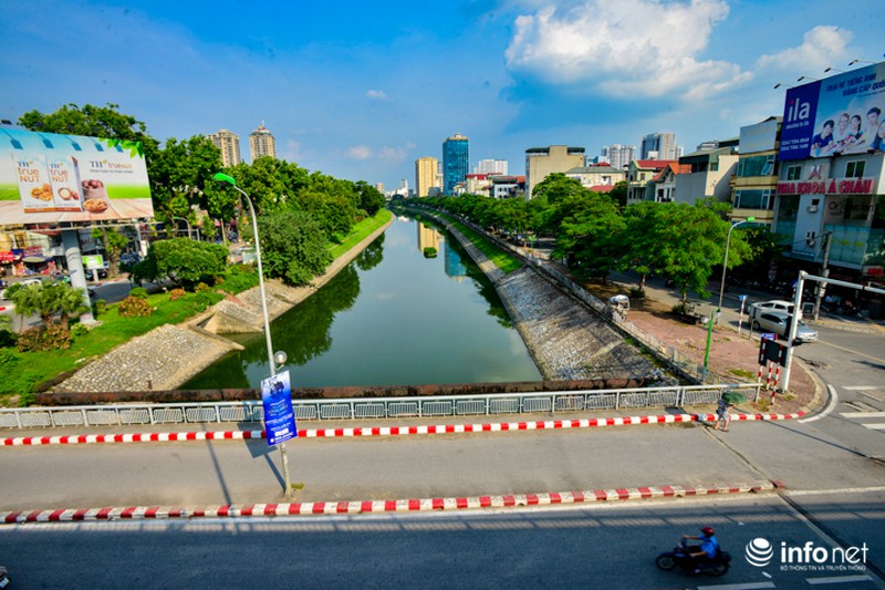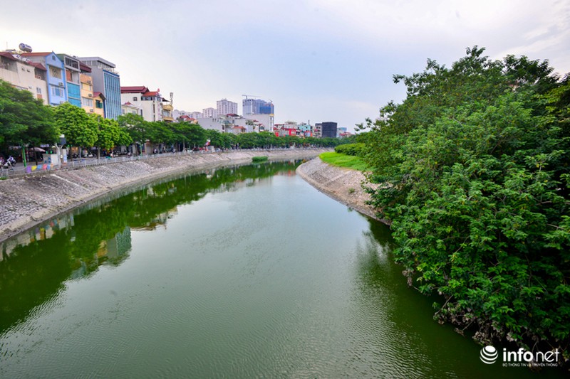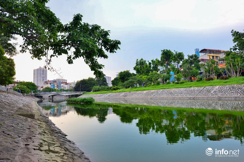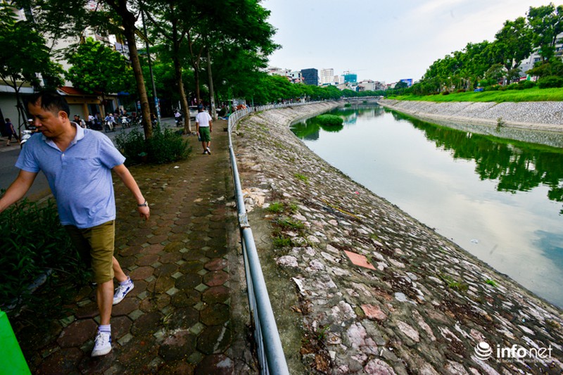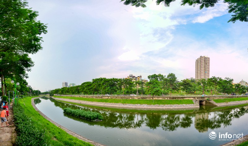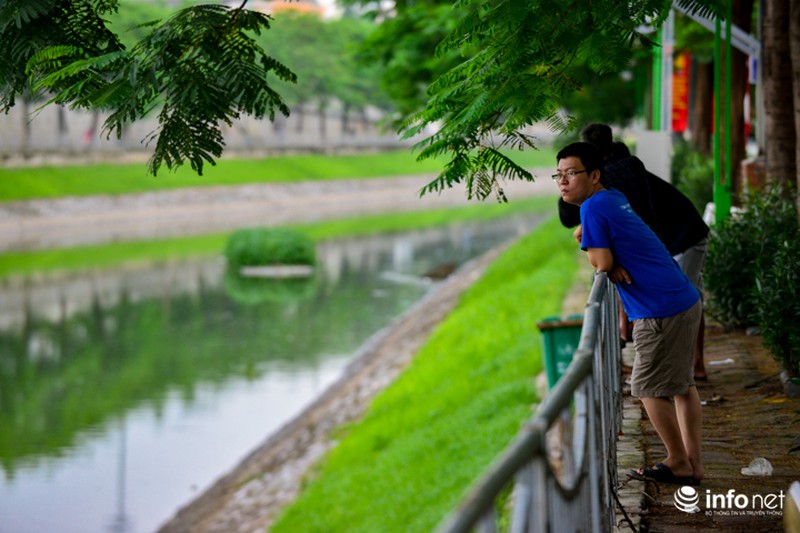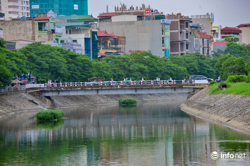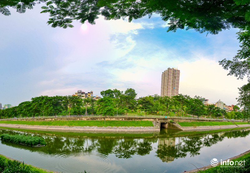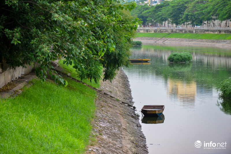 Cùng một góc chụp nhưng được ghi lại vào ngày 23/7/2018, người dân Thủ đô lại dễ dàng nhận thấy điểm khác biệt lớn nhất là mực nước cao hơn, màu nước trở nên xanh hơn. |