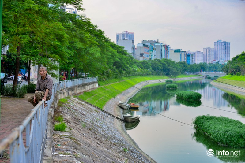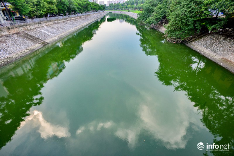 Tuy nhiên, trong nhiều ngày gần đây, sau đợt mưa kéo dài nhiều ngày, sông Tô Lịch như được "lột xác" khi mang màu nước xanh lá cây nên thơ, trữ tình. |