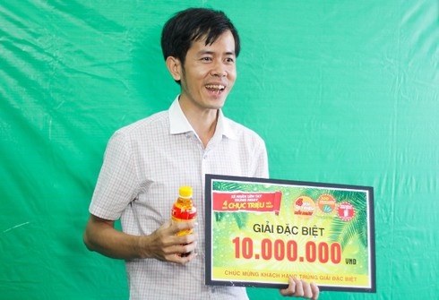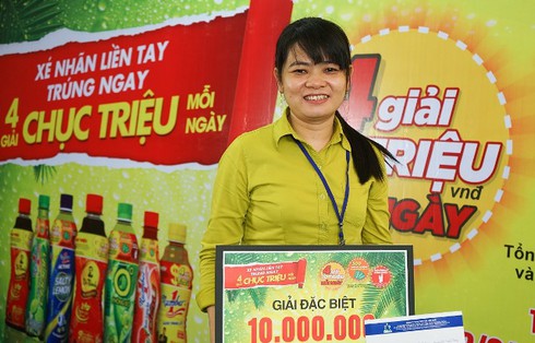 Nữ công nhân may mắn này là chị Nguyễn Thị Thanh Phương quê ở Quảng Nam. Cách đây một tuần, chị mua một chai Trà Xanh Không Độ uống giải khát, thấy trên nhãn có chương trình khuyến mãi nên nhắn tin tham gia, không ngờ hôm sau được thông báo đã trúng thưởng 10 triệu đồng.