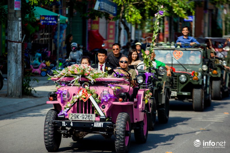 Đặc biệt hơn khi xe dâu là xe jeep cổ được sơn màu hồng. Đoàn xe rước dâu từ đoạn đường Lê Công Thanh tới chợ Phủ Lý đã nhận được rất nhiều sự ngưỡng mộ cũng như ánh mắt tò mò của người dân.
