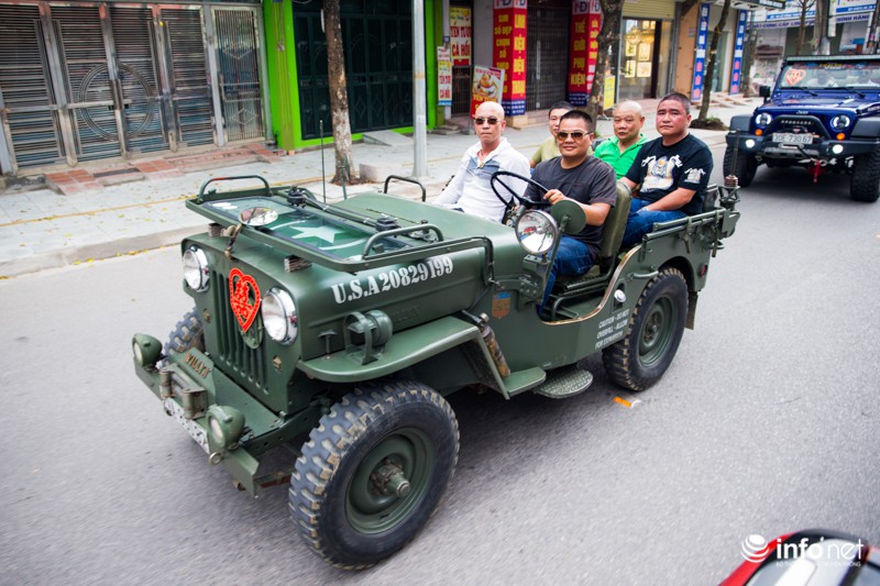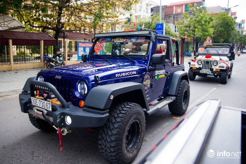 Anh Tú - thành viên CLB HJB cho biết, đám cưới trên là của con gái anh Trần Hải Anh (Phó Chủ tịch Hiệp hội Jeep miền Bắc). Ngoài xe đón dâu màu hồng, đoàn xe còn có một xe Jeep khác cũng thu hút được rất nhiều sự chú ý của người dân là xe màu xanh. Được biết, đây là 2 xe rất lạ và rất ít xuất hiện trên đường.