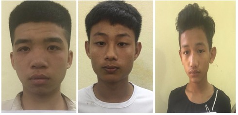 Các đối tượng Thành, Huy, Quyết tại cơ quan công an (từ trái sang). |
