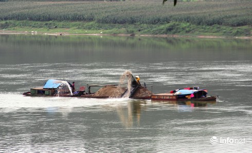 Trước đó, vào lúc 12h trưa ngày 7/5, tại vùng giáp ranh giữa xã Ngọc Sơn, huyện Đô Lương và xã Lĩnh Sơn, huyện Anh Sơn trên dòng sông Lam, Đoàn kiểm tra liên ngành về khai thác khoáng sản và Công an huyện Đô Lương đã bắt quả tang 2 tàu đang tiến hành khai thác cát, sỏi trái phép.