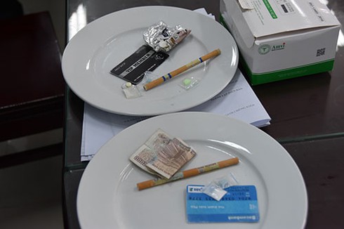 Tang vật thu giữ tại hiện trường gồm: 2 viên thuốc lắc, 1 gói ma túy loại Ketamine, 2 bộ dụng cụ dùng để sử dụng ma túy, 36 điện thoại di động và 11 xe máy.