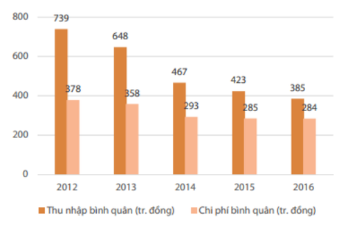 Cùng với mức sụt giảm về thu nhập cho nhân viên, chi phí hoạt động bình quân mỗi nhân viên cũng giảm dần trong 5 năm gần đây. Cụ thể, chi phí hoạt động bình quân mỗi nhân viên năm 2012 là 378 triệu đồng, năm 2013 là 358 triệu đồng, năm 2014 là 293 triệu đồng, năm 2015 là 285 triệu đồng, và năm 2016 giảm nhẹ còn 284 triệu đồng. Cũng trong giai đoạn 2012-2016, số lượng nhân viên của KLB tăng từ 1.500 người lên 2.404 người, trong khi số lượng điểm giao dịch tăng từ 96 điểm lên 117 điểm.