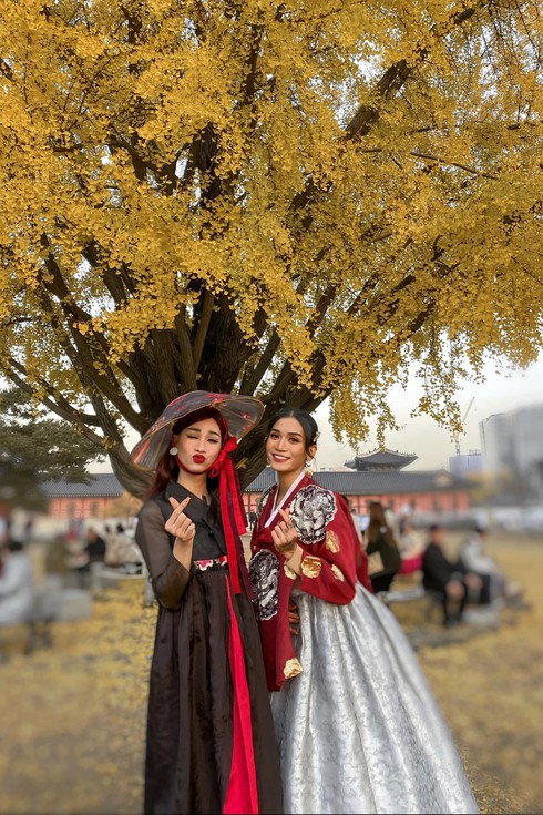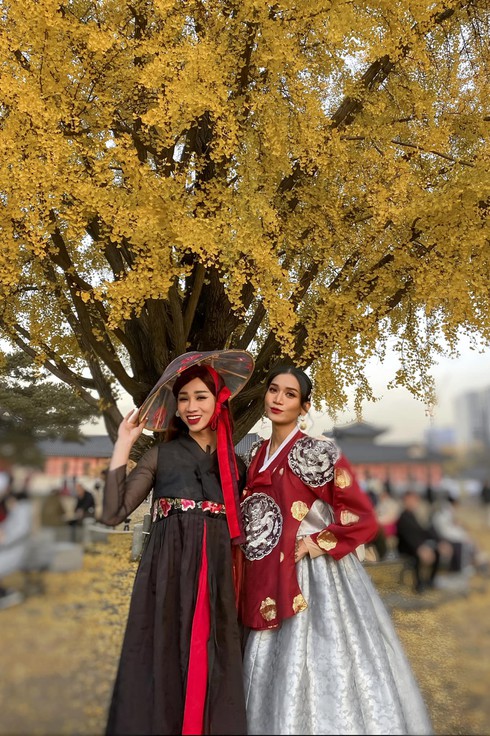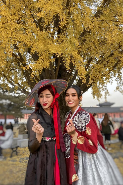 "Chị em sò lụa" BB Trần và Hải Triều đang có chuyến du hí tại xứ sở Kim Chi. Không bỏ lỡ cơ hội chụp hình "sống ảo", cả 2 liên tục thay đổi outfit suốt nhiều ngày qua để thả dáng tại Hàn Quốc. Vừa mới diện đồ truyền thống Hanbok hóa thân thành phi tần chờ vua "thị tẩm", hôm nay, "Chị em sò lụa" lại biến thành 2 fashionista chính hiệu.