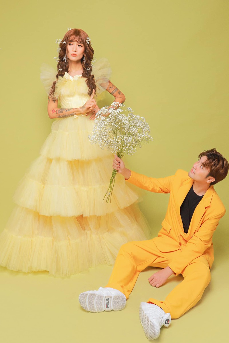Trên trang cá nhân, BB Trần vừa tung bộ ảnh Halloween cùng với người yêu Lê Quang Lâm đẹp "xỉu". Thay vì hóa trang thành các nhân vật đáng sợ để hù dọa fan, cả 2 quyết định biến hình thành cô dâu chú rể cực kỳ xinh đẹp. Trong vai chú rể, Lê Quang Lâm lịch lãm với bộ suit màu vàng trẻ trung, BB Trần là cô dâu xinh xắn với phong cách không thể "cute" hơn.