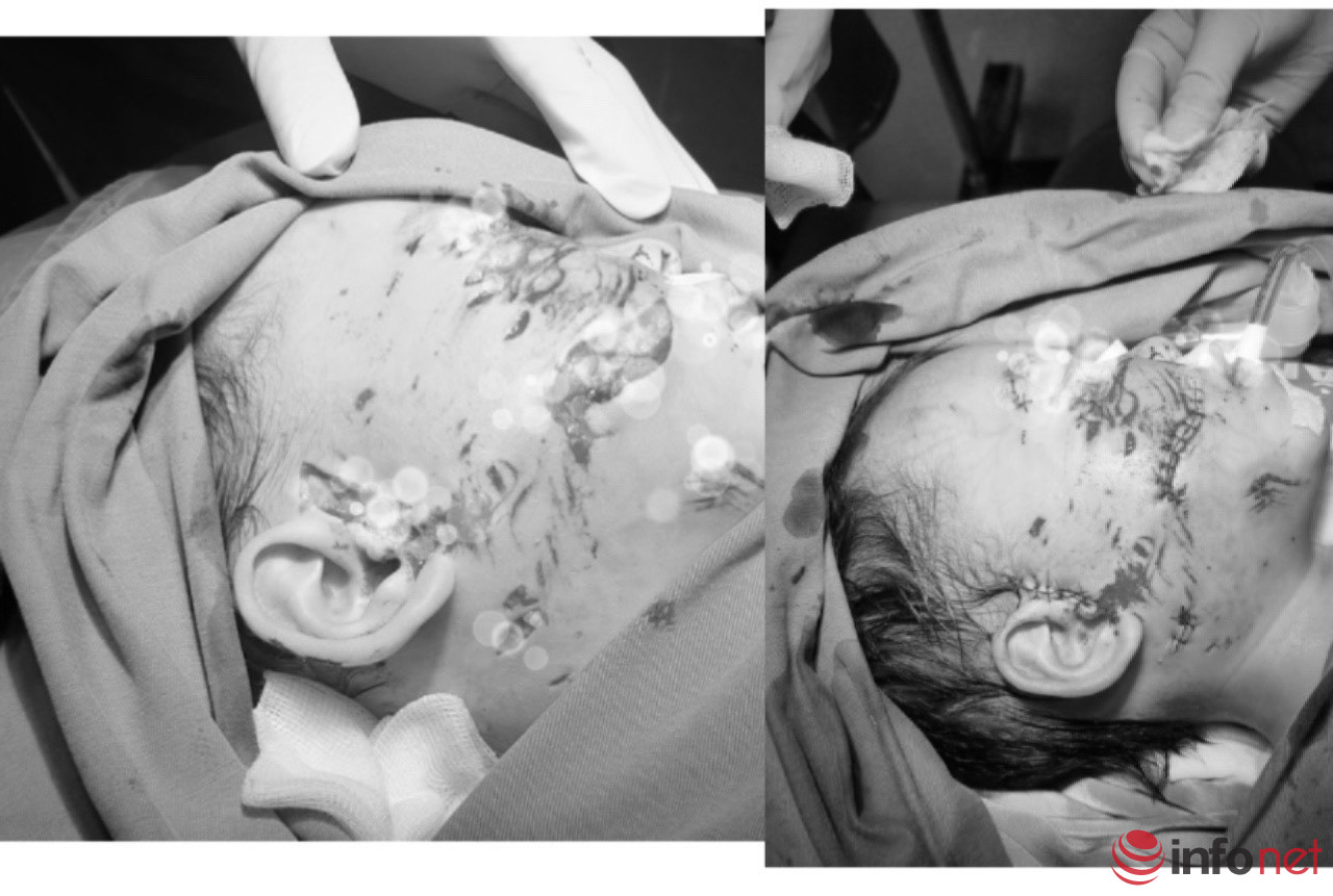 Ngày 14/12, bé được gia đình đưa vào viện trong tình trạng hoảng loạn. Vùng mặt có nhiều vết thương chảy máu. Ngay lập tức được các bác sỹ răng hàm mặt cấp cứu cầm máu, giảm đau, băng bó vết thương và chuyển phẫu thuật cấp cứu. Sau phẫu thuật, sức khỏe của bé ổn định.