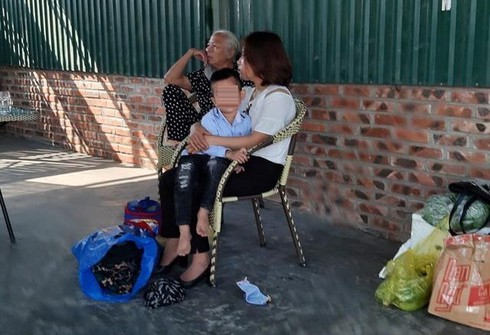 Bà Liên cùng con dâu và cháu nội ngồi thất thần sau tai nạn xảy ra |