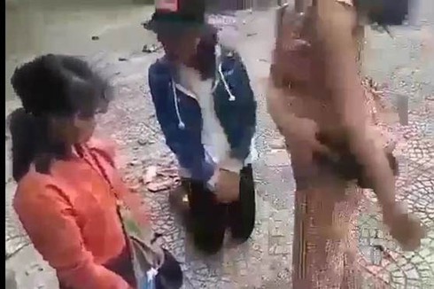 Em T. bắt 3 nữ sinh quỳ gối rồi đánh tới tấp vào người. (Ảnh cắt từ clip) |