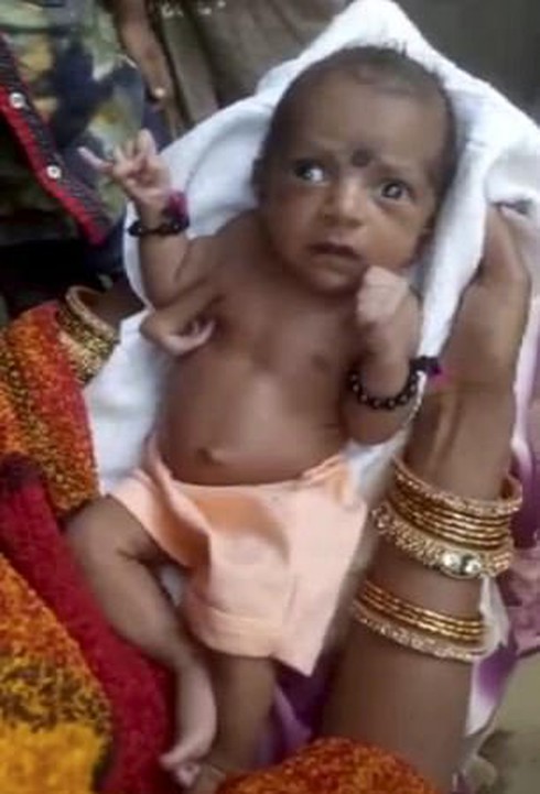 Một bé trai sơ sinh có 4 tay, 4 chân cũng được tôn là thần sống ở ngôi làng Dumri, bang Jharkhand.