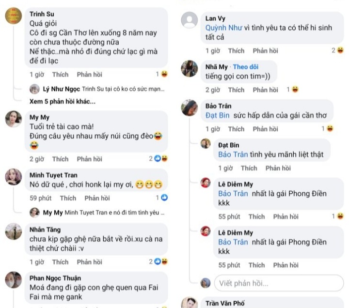 Cư dân mạng sau phút thở phào mừng cho em T., “ngưỡng mộ” rằng “Tình yêu quả là kỳ diệu”, “Thương nhau mấy núi cũng trèo, hơn 100km cũng đạp (xe) là đây”, “Đúng là tài không đợi tuổi”, “Tội em ấy đạp xe ê mông, chưa kịp gặp bạn gái đã bị công an bế đi rồi”…