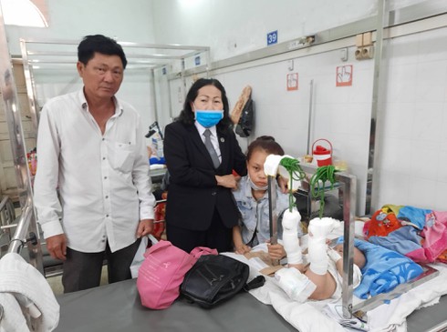 Luật sư Trần Thị Ngọc Nữ thăm em bé nghi bạo hành đang điều trị tại BV Nhi Đồng II |