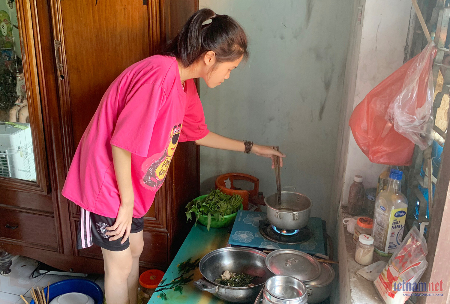Lao động chính duy nhất trong gia đình nay không đảm đương được nữa. Chị Cúc bảo: “Thu nhập của chúng tôi chỉ trông vào sự trợ giúp của ông bà nội ngoại. Có rau ăn rau, có cháo ăn cháo chứ biết làm sao”.