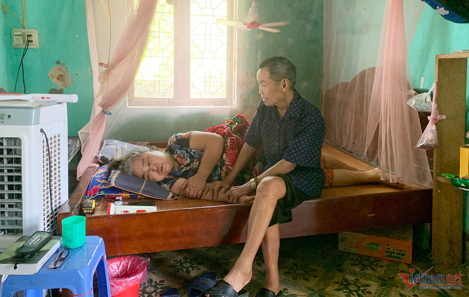 Đầu năm 2023, anh đi mổ và vẫn chưa hồi sức. Những lúc ấy, chị Cúc chỉ biết đưa cánh tay gầy guộc với những đường tĩnh mạch nổi to như sợi chão sờ lên trán chồng rồi thở dài.