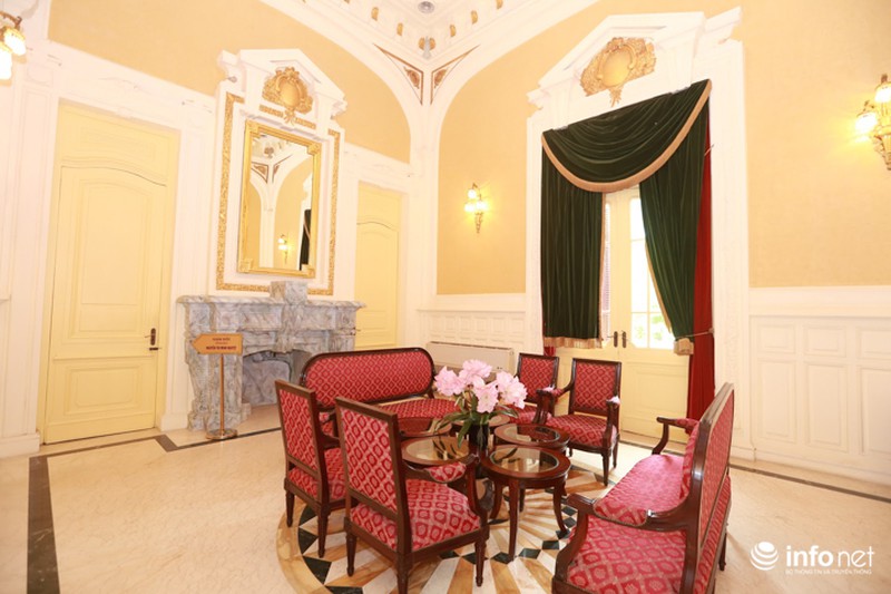 Phòng Khánh Tiết hay còn gọi làphòng Gương. Đây là nơi diễn ra các nghi lễ quan trọng, lễ ký kết các văn kiện của Chính phủ hay đón tiếp các nhân vật cao cấp.Sàn phòng gương được làm theo kỹ thuật Mozaic với đá mang đến từ Italia. Trên tường, xen giữa các cửa đi mở rộng là những tấm gương lớn. Các đèn treo, đèn chùm pha lê cùng bàn ghế mang phong cách cổ điển Pháp. Phòng đã tiếp đón nhiều nguyên thủ quốc gia và các nhân vật có tầm ảnh hưởng lớn trên thế giới như: Tổng thống Nga V.Putin, cựu Tổng thống Mỹ Bill Clinton, Nhà Vua và Hoàng hậu Thuỵ Điển, Chủ tịch Microsoft Bill Gates... |