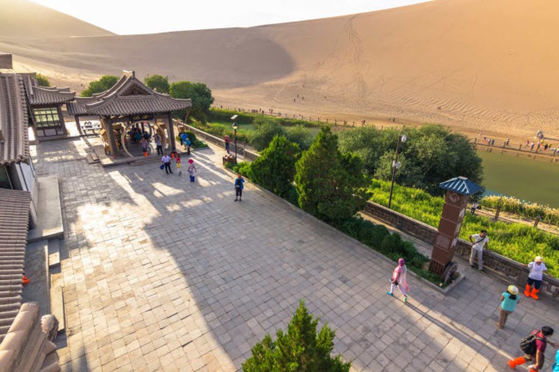 Ngoài hồ Nguyệt Nha Tuyền, du khách còn có thể khám phá các công trình cổ kính tại ốc đảo giữa sa mạc.