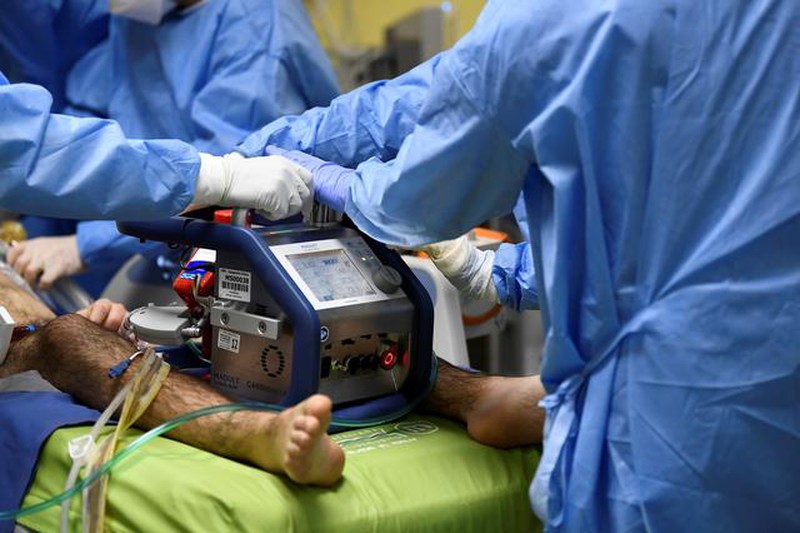 Các nhân viên y tế đang điều trị cho một bệnh nhân mắc Covid-19 nặng tại phòng điều trị tích cực ở bệnh viện San Raffaele, thành phố Milan ngày 27/3. Vùng Lombardy, khu vực giàu có và đông dân nhất của Italy, đã trở thành địa điểm "chết chóc" nhất thế giới, vượt cả Trung Quốc về số ca tử vong do nhiễm virus corona chủng mới. |