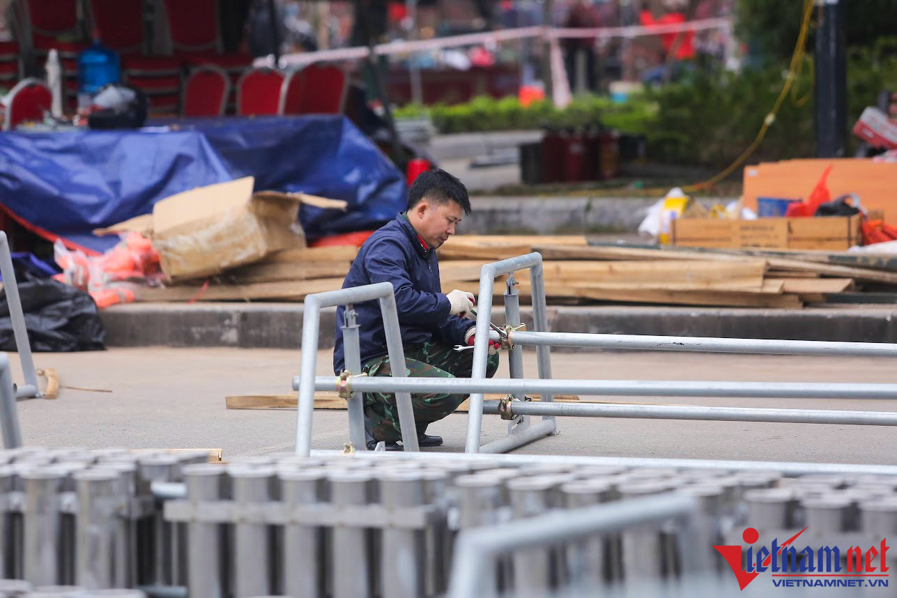 Tại các khu vực bắn pháo hoa ở hồ Gươm đang được lực lượng quân đội gấp rút hoàn thiện. Ở bên ngoài các trận địa đều có lực lượng quân đội bảo vệ.