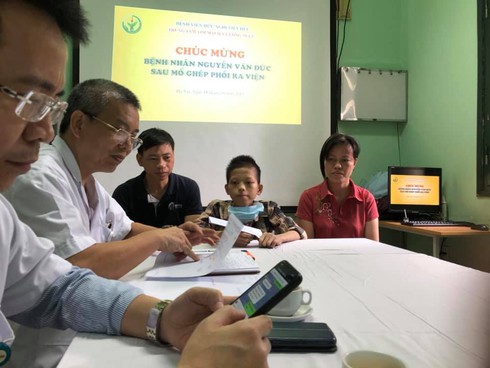 Gia đình em Đức có hoàn cảnh đặc biệt khó khăn, bệnh viện đã phải nỗ lực và vận động nhiều nguồn tài trợ thuốc. Trong ngày ra viện của con trai, bố mẹ em Đức xúc động chia sẻ, sự sống của em ngày hôm nay là một điều kỳ diệu đối với em và gia đình. Anh chị gửi lời cảm ơn tới các y bác sĩ đã đưa em từ cõi chết trở về, tận tâm cứu chữa, chăm sóc cho em cảm ơn những nhà hảo tâm đã ủng hộ để em được ghép phổi và điều sau phẫu thuật.