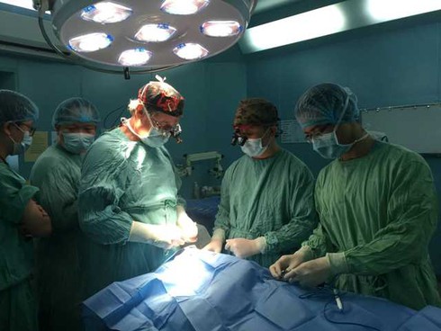 Các bác sĩphẫu thuật cho bệnh nhân tại Bệnh viện Trung ương Huế. |