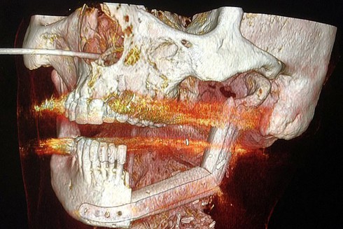 Để tạo hình lại xương hàm cũ, bác sĩ quyết định lấy một phần xương cẳng chân của Albert lên làm khung cho phần xương hàm bị mất.