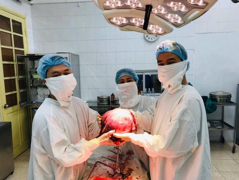 Các bác sĩ lấy khối u cho bệnh nhân |