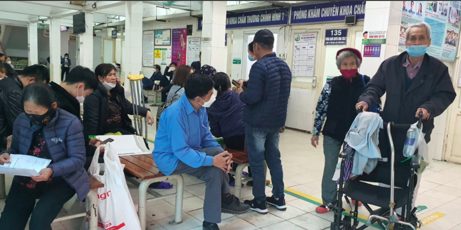 Chị H. có kinh nghiệm đưa người nhà đến Bệnh viện Việt Đức khám bệnh, nhưng chưa từng thấy bệnh nhân đông như hai hôm nay. "Chắc vì thông báo hạn chế tối đa mổ theo kế hoạch. Lúc tôi và chồng đến khám, đông đến nỗi không có chỗ ngồi chờ. Mỗi nơi chụp chiếu, xét nghiệm phải chờ hơn 1 tiếng vì đông quá", chị kể.