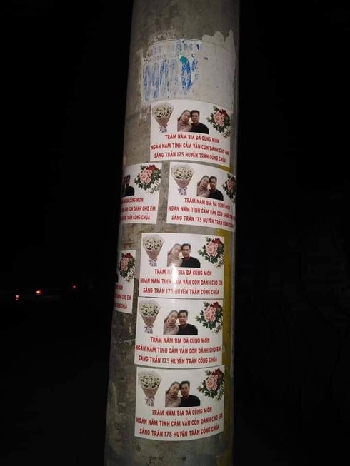 Cụ thể, người này đã dùng những bức ảnh của hai người khi còn mặn nồng, tình cảm bên nhau cùng những câu thơ tình lãng mạn, "ướt át" ngọt ngào và in thành băng rôn, tờ rơi rồi mang đi treo, dán khắp TP Đà Lạt.