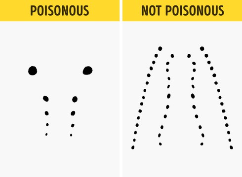 Ngoài ra, nếu trên da rắn có những vân họa tiết hình kim cương, hoặc có từ 3 màu trở lên, đó nhiều khả năng là một con rắn độc.