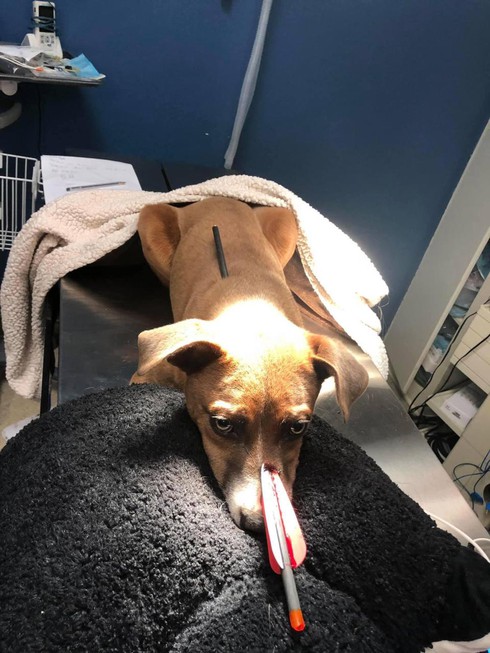 Bị mũi tên xuyên qua đầu, chú chó may mắn sống sót