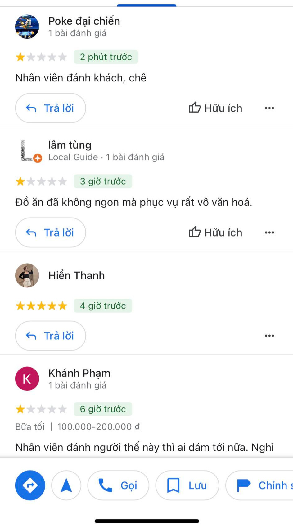 Khách hàng đồng loạt chấm 1 sao cho nhà hàng Nguyên Sinh Bistro - est. 1942 (Ảnh: NVCC)