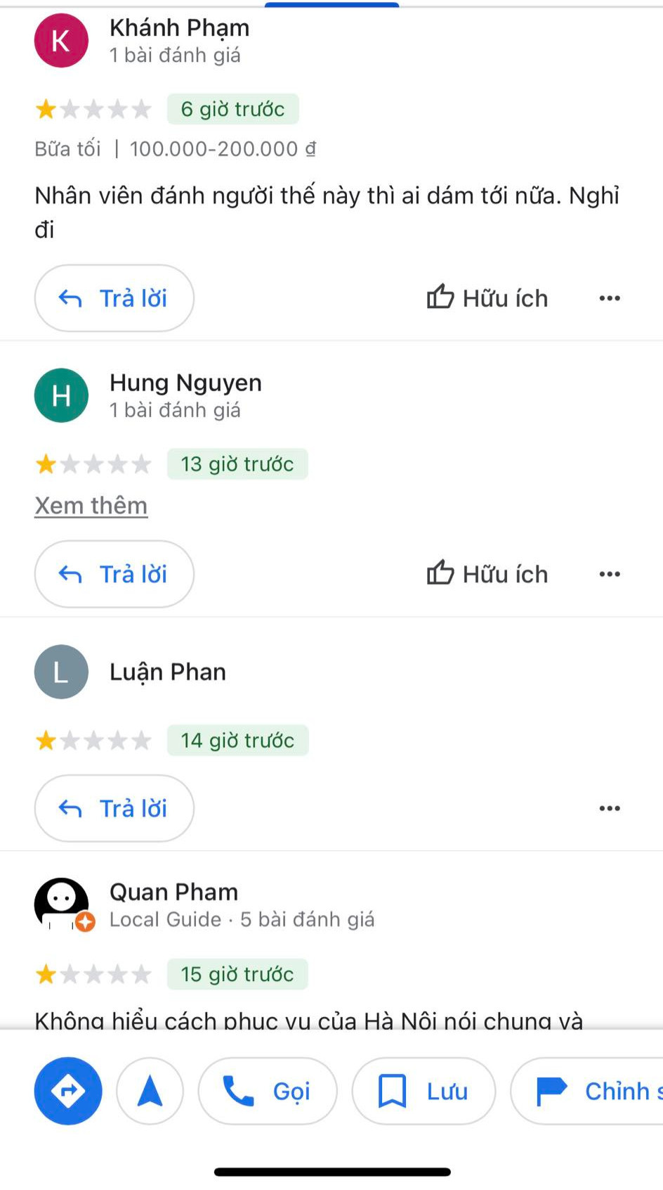 Theo đó, những thực khách trên đang bức xúc trước sự việc lan truyền trên mạng xã hội: Nữ thực khách N.K.A (trú quận Tây Hồ, Hà Nội) tố bản thân và em trai bị hai nhân viên quán bánh mì Nguyên Sinh (địa chỉ 17 - 19 Lý Quốc Sư, phường Hàng Trống, Hoàn Kiếm, Hà Nội) hành hung.