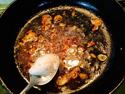 -Bước 4: Dùng luôn chảo vừa chiên trứng, cho hành khô vào phi vàng thơm, đổ bát nước cốt me đã lọc ở trên vào chảo hành phi đun sôi, nêm nếm với 1 thìa gia vị, 3 thìa đường. Đun cho đến khi sốt me sánh vào, nêm nếm lại lần nữa để đảm bảo sốt có vị chua, mặn, ngọt vừa miệng.