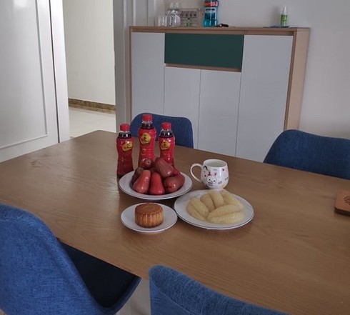 Bàn ăn để sẵn mấy chai Trà Thanh nhiệt Dr Thanh để cả nhà sử dụng. (Ảnh: NVCC) |