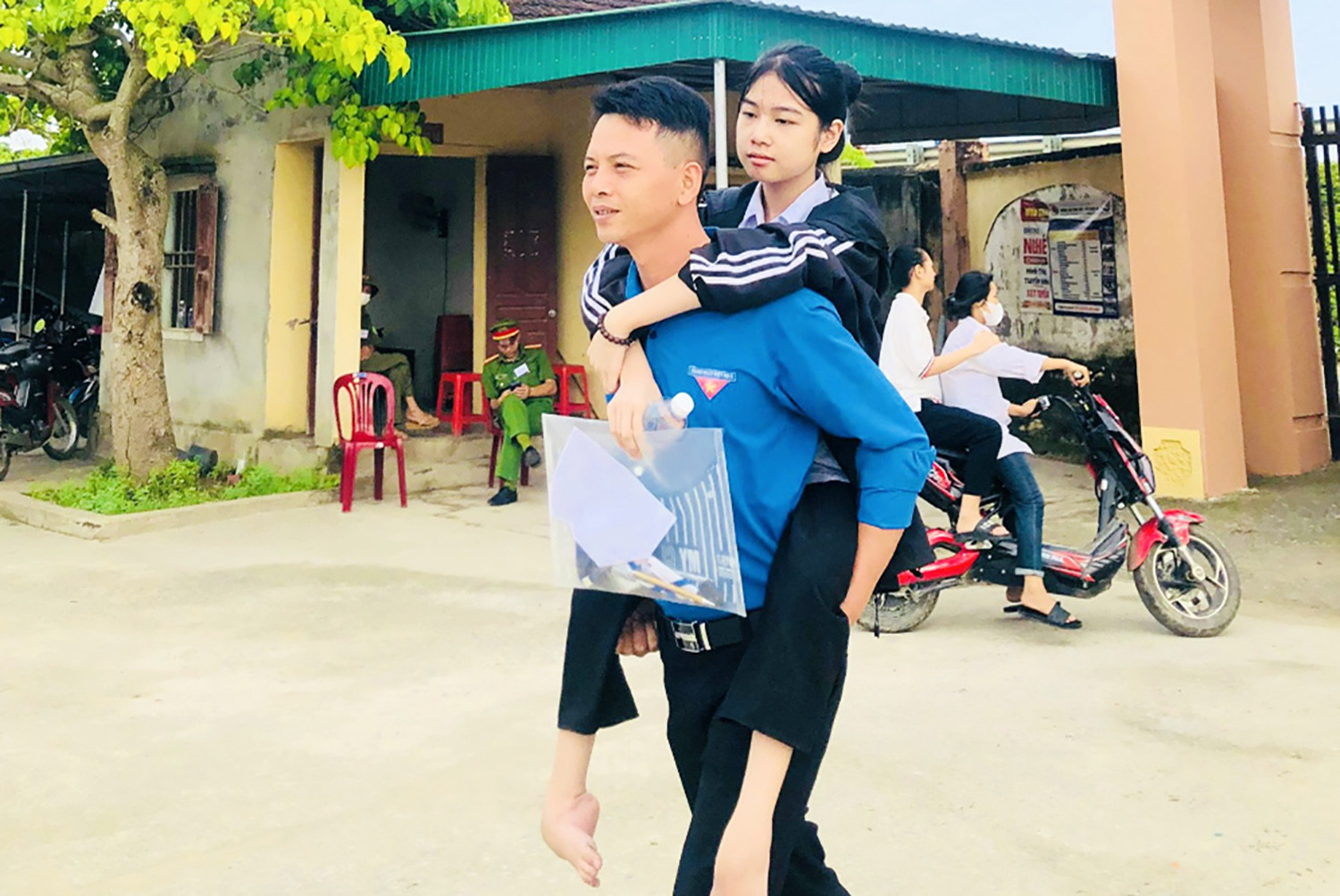 Bí thư đoàn xã cõng nữ sinh khuyết tật vào phòng thi lớp 10