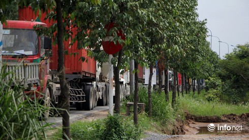 Hàng trăm chiếc xe container xếp hàng dài trên đường Võ Chí Công trong một lần kẹt xe. |