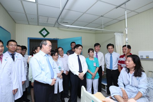 Bí thư Thành ủy Nguyễn Thiện Nhân hỏi thăm bệnh nhân đang điều trị tại BV ĐH Y dược TP.HCM |