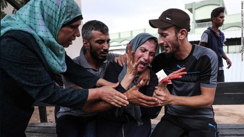 Một phụ nữ Palestine đau đớn bật khóc khi nghe tin người thân của mình đã chết trong cuộc không kích của Israel. |